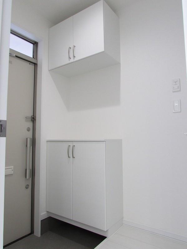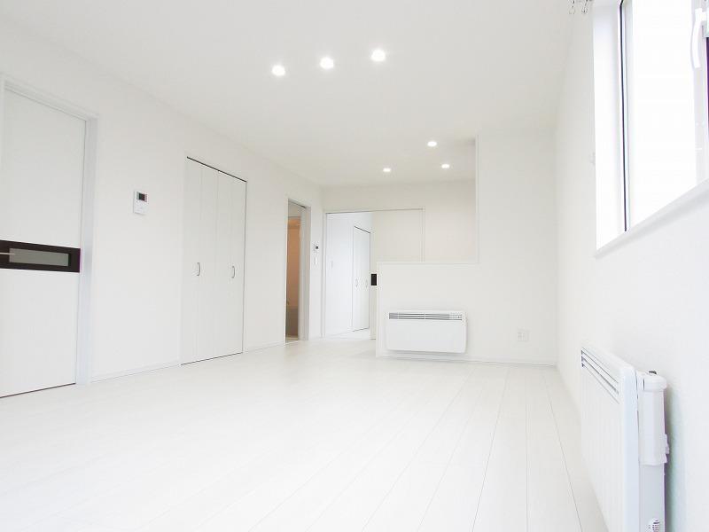 白を基調としたオール電化1LDK物件☆居間にある収納が魅力的です♪便利な宅配ボックス設置済み!